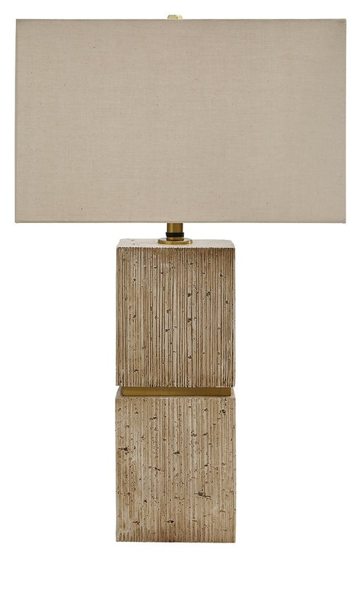 Signature Design by Ashley®Create a designer look with the Laddner table lamp. This contemporary masterpiece combines the organic beauty of faux travertine with the polished ...
