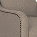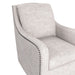 Like a cool breeze on a warm summer day, the Anna swivel chair will carry fresh life into your home. Individually set nail heads highlight its angled lines and curved arms, striking an attractive silhouette that complements any style from transitional to farmhouse to traditional. As you sink into the responsive support of individually pocketed coils on a sinuous spring base, you’ll enjoy the soft-to-touch taupe polyester fabric feathered through with lighter and darker shades. Relax against the plump back cushion, take a 360-degree turn, and enjoy the breeze.