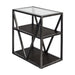Urban living is defined as surrounding oneself in a modern environment, refurbished building or studio/loft. A natural feeling created by the living space as well as the furnishings that attribute to it. The essence of the urban living furniture is its unique ability to fit many different styles: Rustic, casual, contemporaryA mixture of materials with distressed finishes and textured fabrics. Arista combines metal wood and glass for a striking combination. Glass tops with a beveled edge sit inside a metal frame that vs in the front and ties into a wood shelf. A floating shelf design adds function to the set of tables.