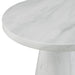 A beautiful round end table that is a statement piece at first glance. Featuring an elegant silhouette that speaks to its contemporary style, this occasional table is finished with a marble paper veneer that adds fresh originality. Let this piece settle into your home and enhance your effortless style in either a beautiful white or grey color.