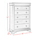 The Cameron Cherry 5-Drawer Chest is the perfect addition to your bedroom! This beautiful vertical chest comes with five, spacious drawers and one hidden drawer, perfect for neatly storing away your belongings. The bottom drawer features a dust proofing layer to help protect your belongings, while the top drawer is felt-lined for your more delicate items. Dark pewter drawer knobs complement the dark, cherry finish perfectly on this traditional chest of drawers. Sleek, clean lines and bracket feet complete the look of this stylish chest.