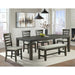 The Colorado dining collection, brings boldness to a casual dining scheme. With a trestle base design and a deep finish, this everyday counter height table serves as a perfect gathering space. Enjoy an attractive chevron design on its table top while accommodating deep chairs and extra storage. The inventive table design creates options for positioning to suite your needs. The slat back design of the chair and the black hardware finishes, reflect a design-forward blend of modern and farmhouse concept.