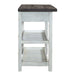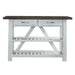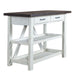 Weathered, rustic surfaces emphasize the simple beauty of everyday things. Farmhouse features a weathered white finish that looks better over time. A picnic style table generously styled to accommodate family and friends has two end leaves (18") that expand the table to 98". The classic Windsor chair known for its comfort, style, and value has simple turned legs and back spindles. Use the server in the dining room, foyer, or as a media console in the living room. This multi functional piece is 55" wide with 2 storage drawers and 2 open bottom shelves, one that accommodates wine storage. The open style server is accented with back diagonal slats to continue the farmhouse design. Add two of the leaning shelves on either side of the server to make a storage wall. The leaning shelves features 5 graduated shelves.
