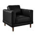 The Hampton Set is a sleek addition for your office, living room, and more. Upholstered in Rich Leather with wooden tapered legs. It is The Perfect Mixture of Style and Comfort. Piped Seams Add A Touch Of Sophiscation.