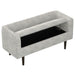 • The Isla storage ottoman blends style with functionality to bring a fresh breeze to your home. With its low back and solid wood legs, this ottoman offers both comfort and durability. The soft chenille fabric, in a light cream color with flecks of gray, creates a serene and inviting look. Hidden bench storage provides a perfect place for blankets, books, or other essentials to keep your space organized and clutter-free. Equally suited to placing at the end of a bed as by an entryway, this storage bench ottoman combines timeless design with everyday elegance.