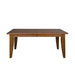 Gather around the Treasures rectangular leg table. Crafted of rubberwood solids and ash veneers, this piece features a rustic oak finish, a planked top, and two 18” removable leaves to accommodate guests or a larger family. This piece can seat up to ten, comfortably. Treasures offers simple shaker styled dining in a subtle finish which evokes the feel of a treasured antique.