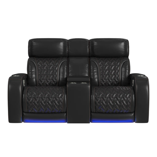 Original price $3,537.00Original price $3,537.00 - Original price $3,537.00Original price $3,537.00Current price $2,839.99$2,839.99 - $2,839.99Current price $2,839.99Prime Time - P3 Sofa With I Table, Reading Light, Heat, Massage, LED, And Speaker - Jett Black With Red Stitching