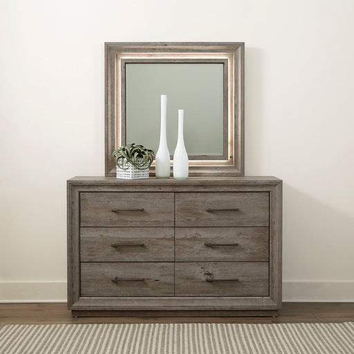 Liberty FurnitureThis casual 6-drawer dresser is the perfect addition to your room. The Graystone finish is accented by the brushed nickel hardware and wide picture...