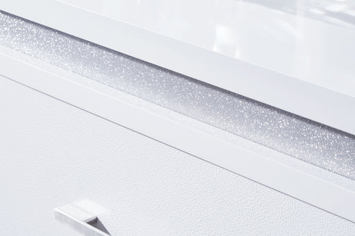 Signature Design by Ashley®This chest of drawers is a showstopper, bringing a touch of modern glamour to your sanctuary. A sleek white finish and inset glitter accents create...