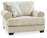 This oversized chair strikes a beautiful balance between classic and current. Its traditional elements include t-cushion seating and setback roll arms, angled for modern flair. A jacquard paisley pillow makes a muted, mellow complement to the chair’s casual textured chenille upholstery. And the choice of sandstone beige is a light and lovely style awakening.