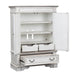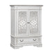 The Abbey Park mirrored door chest is the perfect way to accent your room with an effortless blend of European Traditional design. Weathered brown whitewash top and antique white finish, combined with heavy chipping, creates a truly unique look. The mirrors accented by a gird overlay truly completes this traditional piece.