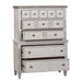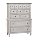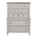 The Heartland chest is sure to make a statement in any home, as its heavily distressed finish is adaptable to any space. Crafted with rubberwood solids and cathedral white oak and birch veneers, this two-toned piece features a felt lined drawer with wood framed drawer fronts, accented by antiqued brass knob hardware.