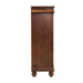 Achieve a casual traditional look with the Rustic Traditions drawer chest. Crafted with poplar solids and pin knotty cherry veneers, this piece features bottom case dust proofing, felt lined top drawer, and fully stained interior drawers. The rustic cherry finish is attained through pin knotty cherry and a well-worn look. This Louis Philippe style night stand features chamfered pilasters and bun feet, adding to the casual feel.