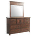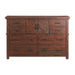 The Jax 8-Drawer Dresser is the perfect addition to your bedroom! This horizontal dresser comes with eight, spacious drawers; perfect for keeping all of your belongings neatly stored away. One large cabinet is featured in the middle of the dresser, which is great for storing away your bulkier items like sweaters. The bottom drawers feature a dust proofing layer to help protect your belongings. Dark bronze drawer pulls pair beautifully with the rustic, cherry finish. Distressed markings are featured throughout completing the rustic vibe of this dresser.