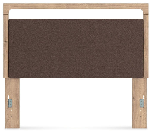 Signature Design by Ashley®The natural wood tones and clean lines of this upholstered headboard echo your easygoing style sensibilities. With a warm finish and replicated oak...