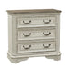 This 3-drawer bedside chest is the perfect way to accent your room with an effortless blend of European Traditional design. Weathered brown whitewash top paired with the antique white finish creates a truly unique look. Softness is added to the design with canted corners and rounded pilasters, accompanied by bead molding on each drawer front. The chest features a felt lined top drawer, cedar lined bottom drawer and bottom case dust proofing that is accented by custom antique pewter bail and knob hardware. With today's modern technology in mind, users can enjoy the benefit of the incorporated charging station, featuring two USB ports, making multi device charging a breeze.