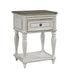 This open night stand is the perfect way to accent your room with an effortless blend of European Traditional design. Weathered brown whitewash top paired with the antique white finish creates a truly unique look. Softness is added to the design with canted corners and rounded pilasters, accompanied by bead molding on each drawer front. The night stand features a felt lined top drawer and bottom case dust proofing that is accented by custom antique pewter bail and knob hardware. Maximize storage with the convenient bottom shelf, perfect for storing your everyday items.