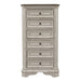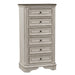 This lingerie chest is the perfect way to add dimension to your room with an effortless blend of European Traditional design. Weathered brown whitewash top paired with the antique white finish creates a truly unique look. Softness is added to the design with canted corners and rounded pilasters, accompanied by bead molding on each drawer front. The chest features fully stained interior drawers, felt lined top drawers, and dust-proofed bottom drawers that are accented by custom antique pewter bail and knob hardware.