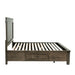 Add a natural feeling to your living space using the Thornwood Hills two-sided storage bed. The rock beaten gray finish is highlighted by saw cuts and hammered metal strip accents across the planked headboard and storage footboard. Crafted with rubberwood solids and mango veneers, this piece features fully stained interior drawers accompanied by framed drawer fronts. The footboard and side rails feature full extension drawers equipped with hammered metal hardware for easy opening. Never question the reliability of the bed due to the bolt-on rails and center supported slat system.