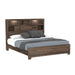 The Peyton collection re-envisions the bookcase headboard into a contemporary rustic aesthetic. Offering a mix of open and enclosed storage, the distinctive headboard offers a practical space for your favorite reads, decorative objects, and useful items. Add a little light with the simple touch of a button and charge your electronics easily with the built-in USB-A and USB-C port. The matching case pieces feature smooth drawer fronts in thick frames that stand atop wide angled feet. Pulling on the black metal bar hardware opens their drawers to reveal fully finished interiors in a classic linen pattern. Replicating the look of wood grain, the whole collection is wrapped in a multi-hued warm brown laminate.