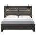The appeal of the Thompson collection lies in the classic beauty of straight lines and the natural charm of rustic details. Replicating the look of wood grain, the dark gray laminate wraps around the entirety of each piece for a seamless and uniform finish. Two industrial-inspired reading lights are integrated into the planked headboard to illuminate your favorite book or create a cozy ambiance. Thoughtful details on the case pieces include decorative corbels arcing up at the base, dark-toned bar hardware, and fully finished drawer interiors with an attractive linen print.