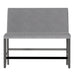 The transitional Seneca collection hosts a unique blend of features and seating options. A delightful medium gray finish on walnut veneers forms a quarter-turned pattern on the tabletop, culminating in the built-in 18” lazy Susan. The tapered frame spreads out to encompass a lower shelf for extra storage. Seating with light gray upholstery and gently curved backs decorated with nailhead trim, you can stay more traditional with just stools or more casual by mixing in a bench or two. Combine two benches with backs with the unique corner piece to make seating perfect for a corner nook. Accentuate your personal style and give the Seneca a whirl.