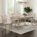 Be distinctively different with the Summer House rectangular table set. Crafted of poplar and rubberwood solids, this set features a finish. The leg table features beautifully heavy turned legs and includes a removable 12” leaf. The chairs have a decorative splat back, a padded upholstered seat in linen, and beautifully round turned legs with nylon chair glides to protect your flooring. With cottage design always in fashion, the Summer House collection would make a great addition to any home.