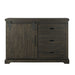 The Stone Server brings refined style and warm design to your dining area. Constructed of wood solids and veneers with a smoky finish, this piece offers three spacious drawers and a trendy sliding door. Decorative dark finished hardware completes the look of this handsome server.