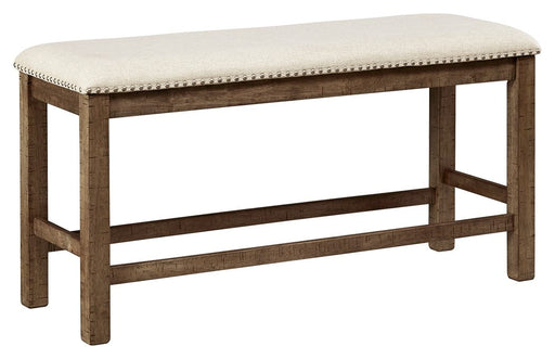 Signature Design by Ashley®This counter height upholstered bench might be simple at first sight, but a closer look reveals beauty in the details. With a distressed nutmeg fin...