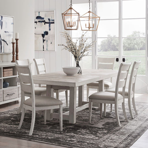 Liberty FurnitureFeel at home with the Brook Bay trestle table set. Crafted with excellence using rubberwood solids and mindy veneers, this table features a two-ton...