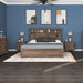 The Peyton collection re-envisions the bookcase headboard into a contemporary rustic aesthetic. Offering a mix of open and enclosed storage, the distinctive headboard offers a practical space for your favorite reads, decorative objects, and useful items. Add a little light with the simple touch of a button and charge your electronics easily with the built-in USB-A and USB-C port. The matching case pieces feature smooth drawer fronts in thick frames that stand atop wide angled feet. Pulling on the black metal bar hardware opens their drawers to reveal fully finished interiors in a classic linen pattern. Replicating the look of wood grain, the whole collection is wrapped in a multi-hued warm brown laminate.