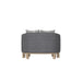 If you thought amenities were only for motion furniture, think again. The completely stylish Maeve collection offers a console with hidden storage, stainless steel cupholders, a wireless charging station, and a Bluetooth speaker with USB chargers. An extra-wide, barrel-shaped accent chair is accompanied by a matching barrel-shaped storage ottoman. The spacious wedge of the sectional makes for extra cuddling space, while the gorgeous dark gray fabric sits atop a warm-toned exposed wood base. Get the whole package with the Maeve collection.