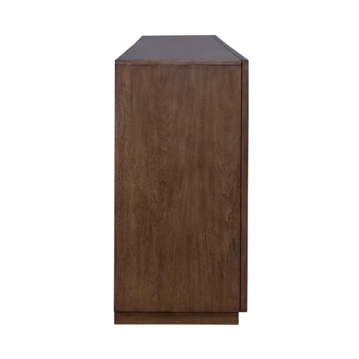 Liberty FurnitureCombine mid century and modern styles to create the Venture Blvd 72" tv console. Crafted with rubberwood solids with cathedral walnut veneers, this...
