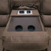 Bring casual comfort into your home with the Adrian motion collection. Soft, walnut brown upholstery is accentuated with contrast stitching, decoratively mitered seams, and copper nail head trim. The thickly pillowed back cushions and padded arms just beg you to recline into their embrace with the easy release of a lever while cupholders and USB charging ports assure you won't need to leave any time soon.