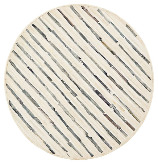 Signature Design by Ashley®Understatedly cool in its construction, this accent table adds a subtle sense of edginess to your modern decor. Its bone inlay in cream and black c...