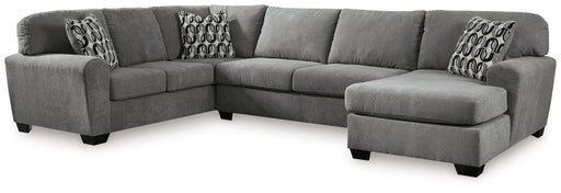 Signature Design by Ashley®Contemporary fashion, meet superior form. This sectional with chaise is strikingly streamlined with its track arms. Cozy cushions invite superior r...