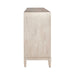 Infused with emotion, the Kinsley four door accent cabinet is sure to turn heads. Crafted with excellence using rubberwood solids with split heart white oak veneers, this piece features a Washed Taupe and Silver Champagne finish. The unique decorative pattern resin door fronts are the showstopper. Behind each set of doors is a large adjustable shelf and wire management provisions to help keep things looking neat and tidy. European soft close door hinges and magnetic door catches make this a piece to last. Transform the ordinary into the extraordinary with the Kinsley four door accent cabinet.