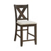 You have found the perfect dining room set to host your next home gathering with this charming expresso table and chairs set. Each chair is upholstered in a lovely white-grey fabric to comfortably seat each of your guests, while the counter-height table allows for convenient interaction or even a space fitting for a buffet setup. Let this dining set fill your home with its farmhouse charm and be a central space that you treasure for years to come.