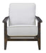 The Metro Accent Chair will keep you in style while you relax. This Adirondack style chair is the perfect addition to your living space, with its contemporary show wood frame. The back features a ladder back design, adding extra flair to this already stylish set. The transitional antique wooden frame makes it easy to pair this accent chair with existing decor. The seat and back cushions are foam filled and will let you kick back and relax in style without losing comfort.